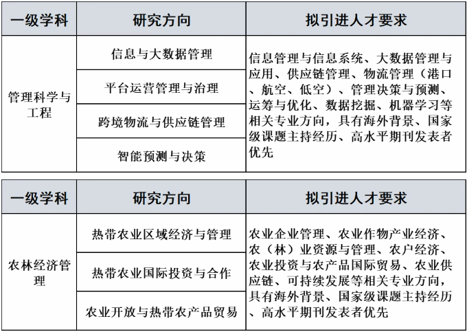我们面向全球,诚聘以下学科方向的国家级人才、高水平学术带头人、教研骨干(不限国籍):